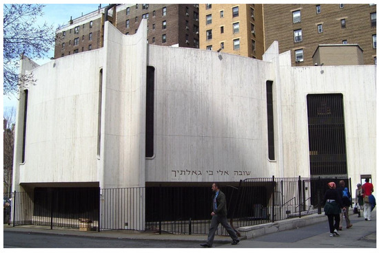 - Gardner, James. 2012. Lincoln Square’s New Shul Looks Nothing Especially Synagogue-Like. The Real Deal. February 24. Available online: https://therealdeal.com/2012/02/14/lincoln-square-synagogue-looks-nothing-especially-synagogue-like/ (accessed on 30 March 2019).