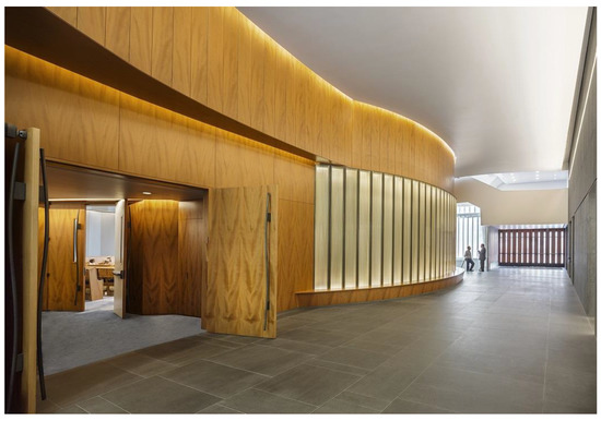 Cedar of Lebanon—albeit obtained in Italy—veneers the main entrance doors and the lobby (Figure 5).
