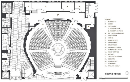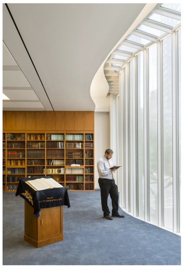 - Rinaldi, Marco. 2013. Lincoln Square Synagogue by Cetra/Ruddy. Global Architecture Archive. March 2. Available online: https://aasarchitecture.com/2013/03/lioncoln-square-synagogue-by-cetraruddy.html (accessed on 30 March 2019).