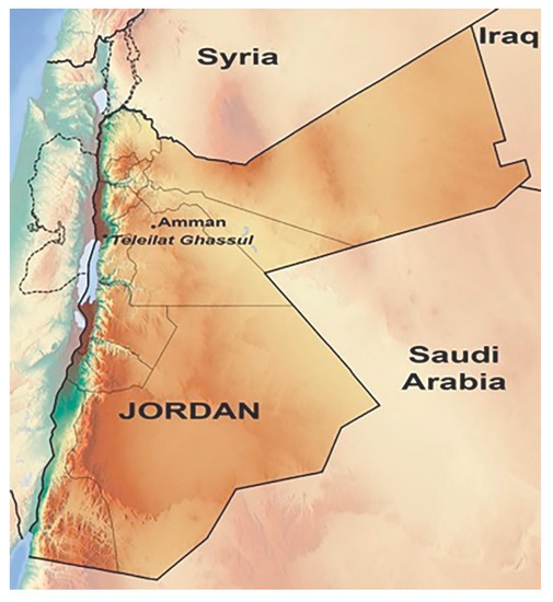 Map of Jordan showing Teleilat Ghassul (created by author).