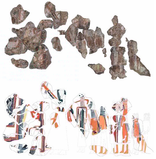 - Drabsch, Bernadette, and Stephen Bourke. 2014. Ritual, art and society in the Levantine Chalcolithic: The ‘Processional’ wall painting from Teleilat Ghassul. Antiquity 88: 1081–98. [Google Scholar] [CrossRef]