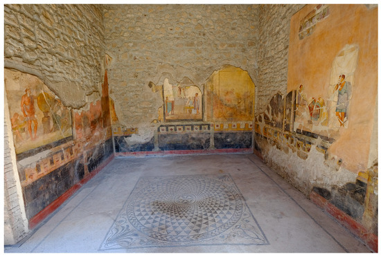 - Bergmann, Bettina. 1994. The Roman House as Memory Theater: The House of the Tragic Poet in Pompeii. The Art Bulletin 76: 225–56. [Google Scholar] [CrossRef]