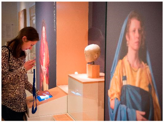 It probably does not have to be stressed that the intricate entanglements just described in the preceding section are impossible to convey in a museum display in any straightforward and easily-understood fashion. During the pilot exhibition, multimedia applications and digital visualizations were set up for the purpose of providing background information particularly to key objects wherever the visitor might want to access it (Figure 20) (Hupperetz et al. 2014, pp. 183–84). Visitors could thus access tablets for further details about the key objects based on the texts written for the exhibition publication similarly entitled Keys to Rome. The title plays on the keycards the visitors received upon entrance with which they could personalize their museum experience. At their first login with their keycard on a tablet in an introductory room, they were able to choose their language, age level, and regional preference.