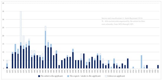 Number of auction sales organized by the artists themselves for their own works, depending on the identity of the applicant, from 1870 through 1925. (Used by permission).