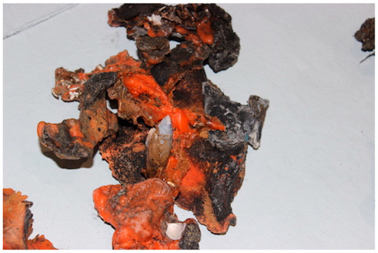 Barton walked many miles with ‘downcast eyes’ to find washed up debris. She came to recognise its origins and reconstructed its material journey by charting it appearance on a map it and telling its story. Her long-term investigation of marine plastics focused on ‘plastiglomerates’: lumps of burnt plastic that have been melted and, in the process, bonded with natural beach materials (Figure 2). Science magazine noted that recent anthropogenic deposits contain new minerals and rock types, which reflects their rapid global dissemination. These deposits often contain new materials, such as elemental aluminum, concrete and plastics, and are thus referred to as ‘technofossils’ (Water et al. 2016). Plastic is therefore a critical marker of the Anthropocene. In ‘Life and Death in the Anthropocene: a short history of Plastic’ (2015), Heather Davis traced the origins of plastic and its links to petrocapitalism argueing that it represents the promise of modernity: ‘the promise of sealed, perfected, clean, smooth abundance’.4 Yet, the plastic encountered by Barton no longer holds that promise: this is plastic ragged, torn, deformed, melted and misshapen and very much enmeshed with nature. Davis observed the ‘accidental or incidental aesthetics’ of the Anthropocene and noted that the aesthetic effects—‘as in aesthesis or affects produced by our sensorial experience of the environment’ have been drastically altered by the presence of plastic (Davis and Turpin 2015, pp. 348–49). Even though the substance may break apart, degrade and become microscopic: it does not biodegrade. As Barton noted, it never goes away. Thus, plastic has moulded both the material and visual culture of the Anthropocene.