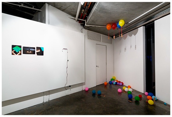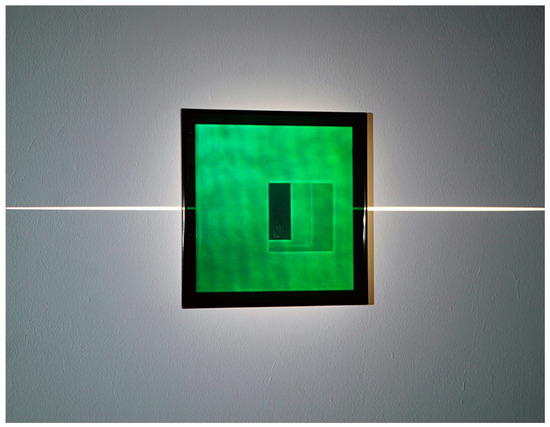 The results over three years were four progressive manifestations and approaches to the same enquiry. In my case, these included an initial sculptural installation (Figure 2, Figure 3, and Figure 4), an edited version, which responded to the volume of the surrounding exhibition space (Figure 5 and Figure 6), photographic representations of the holographic elements within the work (Figure 7 and Figure 8), and illuminated “relics” of the initial installation (Figure 9 and Figure 10). The fifth, and possibly final, manifestation, to be presented in the autumn of 2019, will be an entirely digital, online work. There will be no visible hologram, no artefacts, and no physical debris, only the transient memory and the historical archive of past presentations.