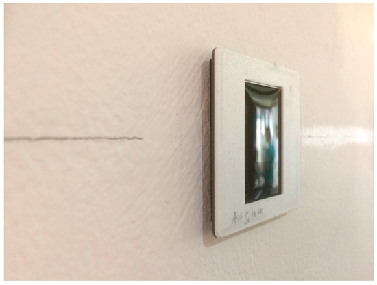 Detail: Three-Nine 35 mm Drawn showing the additional unprojected and unilluminated slide, as well as the hand-drawn pencil line on the gallery wall. Created by author.