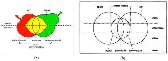 Since 1982, Clive Phillpot (curator, author, and librarian, Chelsea School of Art, UK and MoMA, New York) has tried to define a location for artists’ books within the greater art/book milieu. This diagrammatic overview, visualised as a ‘fruit’ version in 1980s and further distilled in 2003, is still a useful point of reference having provided the fluid term ‘verbi-visual’ (Figure 1).