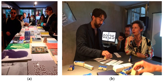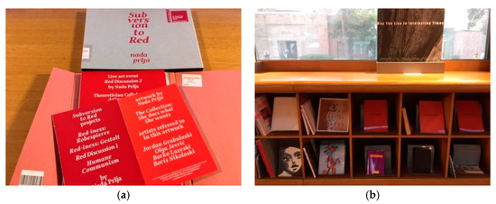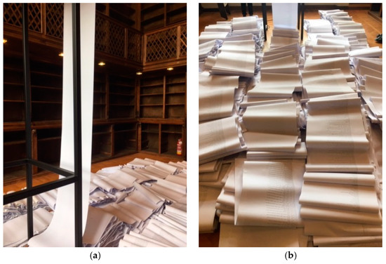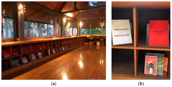 (a) Book Pavilion. 2019. North Macedonia Pavilion, catalogued for the Biennale Library; (b) Book Pavilion, books donated by participating artists, Venice Biennale 2019.