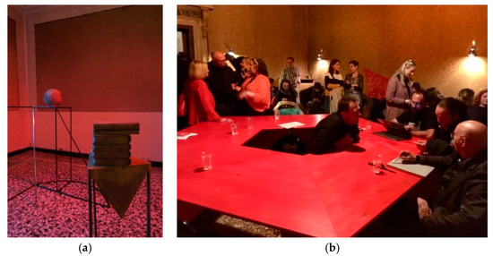 (a) Nada Prlja. 2019. The Collection: She does What She wants untitled II; (b) North Macedonia Pavilion, Palazzo Rota Ivancich. 2019. Opening performance ‘round table’ discussion.