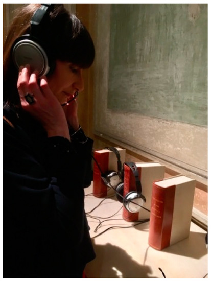 The Querini Stampalia Foundation is another fixed point of reference in Venice. Maria Teresa Sartori’s work ‘The Sound of Language’ which is part of the museum’s collection is included in the current exhibition, ‘Dire il tempo’ (Telling the time). The 11 audio books contain sound recordings of poems, literary extracts in different languages which have been reworked, leaving accent and length of words, rhymes and metre unaltered making it possible to listen to the sound of each individual language in terms of ‘pure sound’, freed from its original meaning (Figure 22). The Querini is celebrating 150 years of what it refers to as ‘conserving the future’. Curated by Chiara Bertola, the exhibition integrates the use of its library, house, museum and contemporary galleries.14