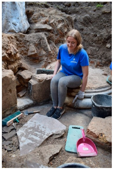 Another surprise provided by the excavation was the exposure of an unknown vaulted cellar built of bricks below the bimah. An arched opening on the front side of the structure led to five steps that dropped into a space occupying the full expanse below the bimah. Two pairs of metal pegs were found on both sides of the entrance. The cellar contained a few hundred coins, most dating from the 17th to 18th centuries, and other finds. There is certainly a possibility that this cellar belongs to the base of the original Baroque bimah of the synagogue and was reutilised during the 18th century for the new structure. Certainly, this cellar is not mentioned in any of the descriptions of the bimah, nor is it visible in any of the photographs. In this context, we should note the legend that recounted the existence of a secret tunnel that led from the Great Synagogue in Vilna to Troki (Trakai), a distance of around 20 km (Broydes 1947, p. 23). Levin (2012, p. 287) proposes that the legendry tunnel was supposedly entered from the genizah (storage for the disposed sacred items) in the polisz, an annexed room on the south-western side of the synagogue, though, in the same manner, the legend could relate to the dark cellar below the bimah.