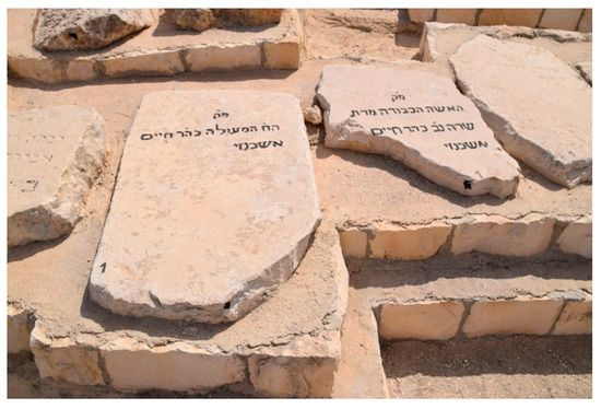 If we are able to trace Shmuel and Eliezer back to the cemetery in Vilna, what of Ḥayim and Sarah. A search of the cemetery in Tiberias was unsuccessful (Morgenstern 1998, p. 171, n. 96); however, two tombstones in the Sephardi cemetery on the Mount of Olives in Jerusalem may well be those of Ḥayim and Sarah.23 The graves (Figure 14), located side by side, have no dates and limited supporting data beyond being in an area of the cemetery dated in use to the correct period and marked with the communal designation אשכנזי (Ashkenazi). As there was no Ashkenazi cemetery in Jerusalem at the end of the 18th century, a non-Sephardi Jew would have been buried in their cemetery, but his community affiliation would have been added to the marker.24