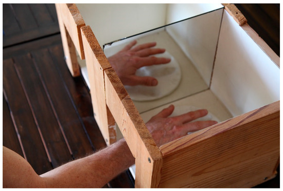 A decade later, and extending his research into the relationship between inner states of mind, the body, and the senses, Lutyens worked on a project at the 14th Istanbul Biennial, which charted the emotional response of thousands of biennial visitors to shape and color, in collaboration with the neuroscientist V.S. Ramachandran. Together with curator Carolyn Christov-Bakargiev, they brought Ramachandran’s famous “mirror box” (Figure 3) to the Istanbul Museum of Modern Art. Ramachandran invented the Mirror Box for healing the “phantom limb” syndrome, a condition in which a missing or amputated limb causes pain where the missing limb would be (The Last Psychiatrist 2009). The patient inserts her existing hand into one side of the box, and her missing hand seems to appear in the other side of the box. By moving the existing hand, the patient has a sense that her missing hand can be reactivated and thus diminishes the pain related to the loss. Lutyens was inspired by this simple tool to explore how symmetry and the use of mirrors could be expanded as a device not just in art but also as it relates to therapy, particularly in its ability to create a sense of completion in the psyche through duplication or even multiplicity.