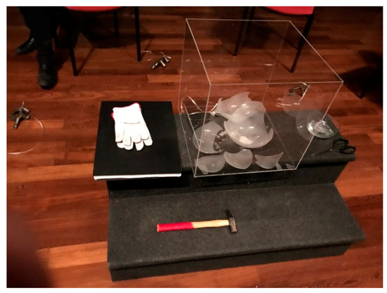 As a development of this past research in Istanbul, Lutyens’ (2015) work exploring fear and trauma in the context of hypnosis was included in the Salon Suisse of the 57th Venice Biennial in 2017 by invitation of Dakar-based curator Koyo Kouoh. Lutyens created a performance titled Phobophobia, meaning “the fear of fear”, which sought to isolate the location of fear in the body through hypnosis and expel it through a cathartic process centered around an expectancy violation. This was done by smashing what appeared to be a helium-filled balloon that had been tied around a participant’s wrist with a hammer, revealing the balloon to be made of glass (Figure 4). The idea behind this process is that the mind is often tied to pre-existing ideas surrounding challenges and illness, especially chronic ailments, and a self-fulfilling dynamic develops, making the situation worse over time. As Rollo May described in his book The Meaning of Anxiety, “fear ordinarily does not lead to illness if the organism can flee successfully. If the individual cannot flee, but is forced to remain in a conflict situation which cannot be resolved, fear may turn into anxiety and psychosomatic changes may then accompany anxiety” (May 2015, p. 69). When the mind is unexpectedly confronted with a dynamic that contradicts previous experience, it may be freed from its expectations, or conflicts, and be able to reverse fixed ideas, including ones about the state of one’s health.