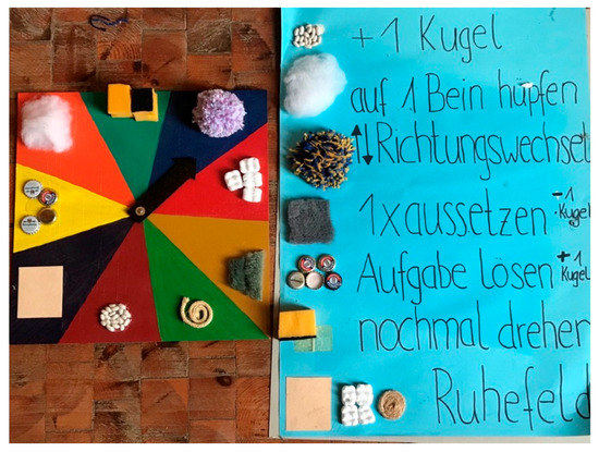 This is an example, from the Lippoldsberg Klinik, of older art therapies combined into a tactile game for patients, which helps them engage with social rules, sequences, color, texture, and shape.