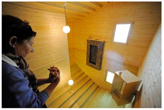 Born in the art world, the project is now morphing into a therapeutic tool. The cabin is now being rebuilt at the Klinik und Rehabilitationszentrum Lippoldsberg. The particularly important aspect of the cabin, in the context of stroke, is that it is symmetrical along a horizontal axis—the top part of the cabin, including doors, windows, chimney place, lamp are repeated upside-down, into the ground, to give an initial impression that the cabin has a mirror for a floor. This creates an ‘expectancy violation’ (Burgoon 2015) resulting from the inability to register whether the cabin has a mirrored floor or not, creating a jolt in terms of the viewer’s usual reasoning and expectations. Perhaps this kind of environment, over time, could promote neuroplasticity, contributing to its apparent therapeutic impact.
