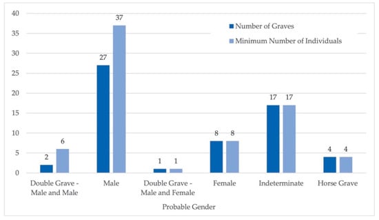 Probable gender of the deceased associated with grave contexts containing faunal remains. Double graves are single graves that contain two individuals.
