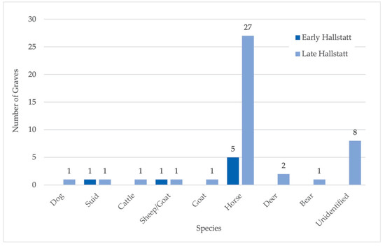 Comparison of zooarchaeological remains dating to the Early Hallstatt (c. 800–600 bce) and Late Hallstatt (600–300 bce) periods. Only dateable graves were included.