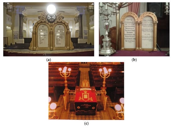 Examples of shnoder-signs in the form of the two stone tablets. (a) Budapest Hegedűs street (zsinagogak.hu, 2015. No copyright infringement is intended), (b) Győr (photo by the authors, 2016), (c) Budapest Bethlen square (photo by László Schäffer, 2007. Used with permission).