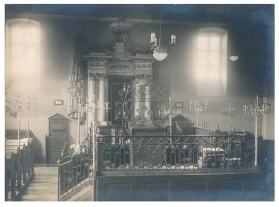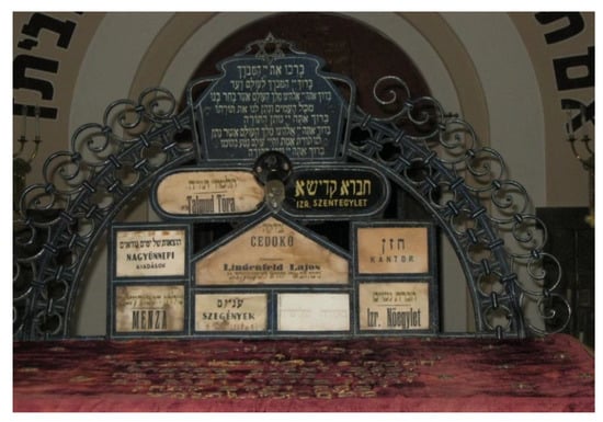 | 31 | See for example the depiction of the first Shavuot service there in 1860, in the collection of the Hungarian Jewish Museum and Archive, available online: http://collections.milev.hu/items/show/32131 (accessed on 1 December 2019). |