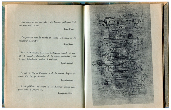 A year after Wols’s death in 1951, his friend, the artist and poet Camille Bryen (1907–1977), emphasized this anti-humanist aspect of his work and called him the being “the least recessed in the species” (Audiberti and Bryen 1952, p. 119).2 The citation comes from L’Ouvre Boîte. Colloque abhumaniste (The Can-Opener. An Abhumanist Colloquium) which was co-written by Bryen and the playwright Jacques Audiberti, two historically underestimated intellectual figures of the post-war Saint-Germain-des-Prés community. Audiberti coined the term “abhumanism” in 1946 (Audiberti 1946) and intended to question humanism as a valid paradigm after the catastrophic world wars. Abhumanism took its cues from Dadaism and Surrealism—Audiberti had many contacts with the latter, Bryen with both, and Wols revolved around surrealist dissidents, some of them former Parisian Dadaists—and responded critically to the claims of Jean-Paul Sartre, the most notorious of Wols’s champions, for a renewed humanism.