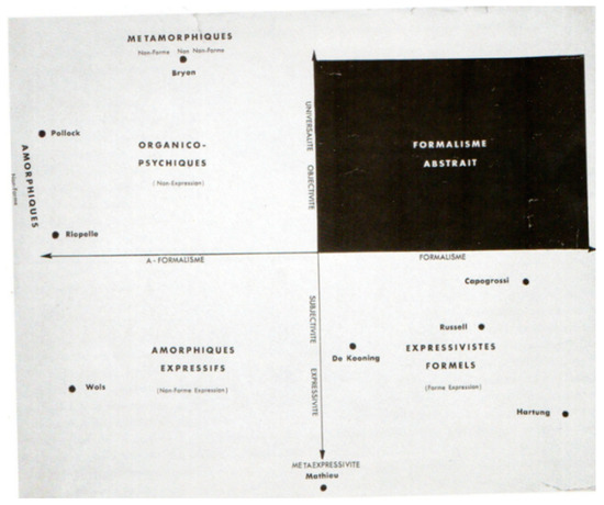- Tapié, Michel. 1951. Véhémences Confrontées: Bryen, Capogrossi, De Kooning, Hartung, Mathieu, Pollock, Riopelle, Russell, Wols (March 8–31). Paris: Galerie Nina Dausset. [Google Scholar]
