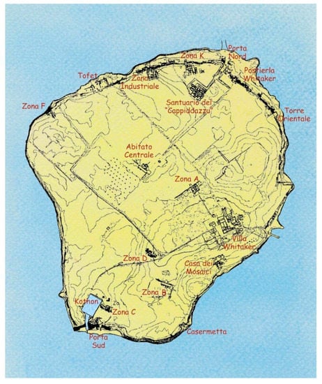The renewed interest in animal studies, of which the special issue on “Animals in Ancient Material Cultures” is an example, inspires us to focus on a single archaeological site—rather than a single animal as is the more usual approach. Our review can, however, not be comprehensive, that is, including every single animal attestation in the evidence on or around the island. For, even after over a century of excavations (including annual campaigns since the 1960s), only part of the island has thus far been excavated. Underwater excavations in the lagoon and the shoreline at Birgi Vecchi, not to mention the harbor at the southern bay of the Stagnone (present-day Punta Alga at Marsala), will doubtless provide additional material. Moreover, even a comprehensive catalogue of all animal depictions and physical remains would produce a publication the length of a monograph.