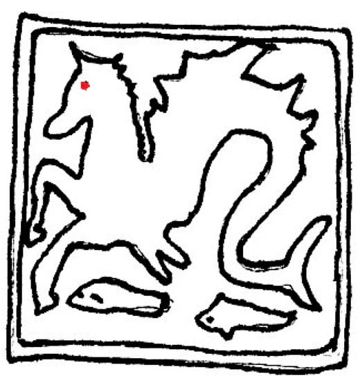 Finally, a hippocamp, a mythological creature with the upper part of a horse and the lower body and tail of a fish, received the honor of a panel of his own in the House of the Mosaics (Figure 10). There, the artist used a red pebble to indicate the eye and then make it stand out against the black background of the animal’s body, perhaps to better characterize it. The iconographic motif refers to glyptic schemes and coin types, such as the litra of Dionysius I of Syracuse, which we know to be associated with coin finds in Motya dating to the 5th century bce.58 The typical shape of seahorses was certainly known by ancient populations, who thought they were divine animals. It is no coincidence that Greek myths assigned the creation of the horse to the sea god Poseidon, who is often depicted with a chariot drawn by seahorses. So, the seahorse is usually represented in art the way it looks in reality, or as a blending of land and sea creatures, a horse with a fish tail, just as in the Motyan case.