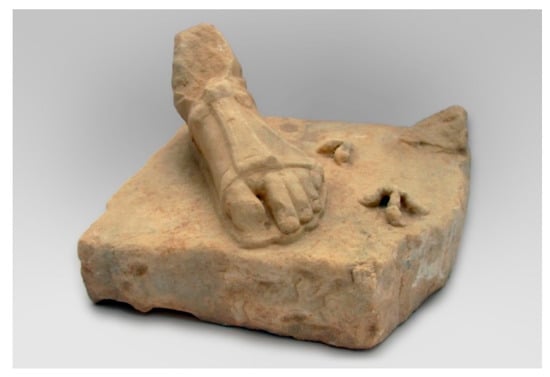 It seems almost certain that the small marble sculpture depicts an eagle (Figure 11), as it resembles that bird as depicted in other Roman sculpture, while the claws on the marble pedestal could represent a quail (Figure 12). The latter bird can be connected with other evidence found at Motya, for the quail was sacred to the Phoenician counterpart of Hercules, Melqart.61 Still, the bird could also be understood as a rooster, typically connected to Asclepius, the god of health and healing.62 Additionally, it may be relevant that the dedication of a church in the Middle Ages over the ruins of the sanctuary was made to the patron saint of physicians, San Pantaleo. For this could validate the hypothesis that the Phoenician-Punic sanctuary and subsequently the Roman building were places of worship of gods of health.