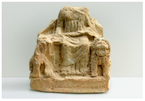 Enthroned Cybele flanked by seated lions (MGW inv. no. 5427); limestone sculpture; ca. 6th–5th century bce.