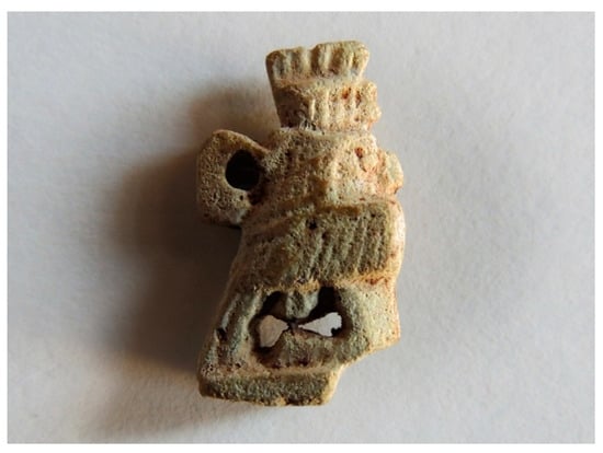 The presence of other zoomorphic amulets in Motya, made of various materials (such as glass, plaster and bone), are also explained by their Egyptian connotation.98 For Egyptian gods often took the likeness of animals. Among the most popular amulets was the falcon, the sacred bird of the solar deity Horus, the archetype of Pharaonic kingship (Figure 24). Equally common are bovine amulets, representing the celestial cow Hathor, the goddess of love and fertility—often shown in the act of breastfeeding her calf (symbolizing motherhood); or amulets of the hippopotamus goddess Taweret; additionally, amulets appear in the shape of the ibis and the baboon, the sacred animals connected with the lunar deity Thoth, the scribal god of wisdom.