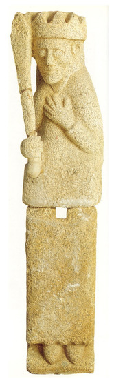 As a visual document, the iconographic elements in the king’s sculpture are of great relevance and importance. The king is represented wearing a crown, his body covered by a long garment, wielding a sword over his shoulder. The dimensions of both sword and crown are indicative of their prominence among all the objects composing the early monarchs’ regalia, at a time of territorial reconquest in the Peninsula. The king was an entitled sovereign by the sword he held and which defined him in his condition of crusader and conqueror of lands for the Christians. Later, his worth was recognized both by Rome and the emperor, his cousin King Afonso VII of Leon and Castile (r. 1126–1157), since opposing views did not carry the same political and religious weight to the Pope (Figure 1).
