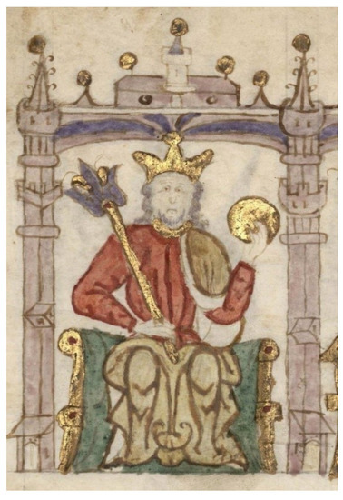 Lastly, I would like to point out that a 14th century Castilian manuscript (1312–1325) entitled Compendio de Crónicas de Reyes (Biblioteca Nacional de España) contains representations of first dynasty Portuguese kings and, in spite of the idealization, even standardization of these portraits, they provide consistent evidence of the regalia associated with the rituals of coronation and the insignias offered to the kings in those ceremonies. These representations have essentially been used to illustrate online biographies of the monarchs, but they should in fact be valued as idealized figurations of the kings that preceded the times of King Dinis, when they were produced. The images were not part of a Portuguese artistic commission, and cannot be taken at face value (no representation of our kings previous to the 15th century can), but they illustrate the ways in which kings were imagined or remembered before 1325 (Figure 7).
