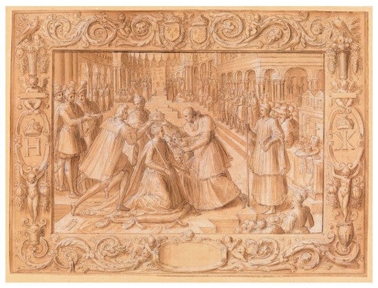 - Brühl, Carlrichard. 1962. Fränkischer Krönungsbrauch und das Problem der “Festkrönungen”. Historische Zeitschrift 194: 265–326. [Google Scholar] [CrossRef]