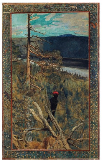 Akseli Gallen-Kallela, Palokärki (The Black Woodpecker), 1893, gouache, 145 cm × 90 cm. Finnish National Gallery/Ateneum. Photo: Finnish National Gallery/Pirje Mykkänen. Used with permission.