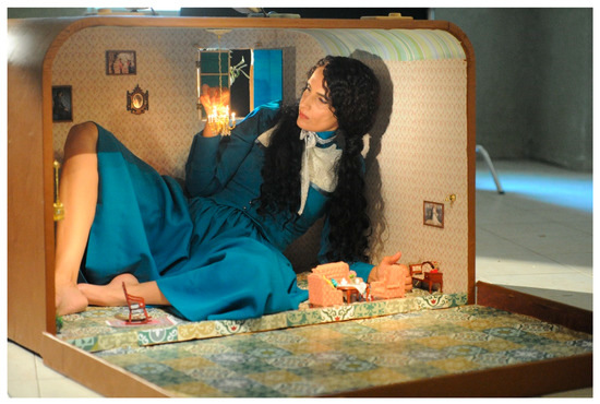 The artist and actor Raida Adon was born in Acre in 1972 to a family that includes members of all the three religions of this region: Muslims, Christians, and Jews. She regards herself as Palestinian, but also as Israeli in every way, and is deeply involved in local art, cinema, and theater. A former model, she studied art at the Bezalel Academy of Arts and Design in Jerusalem between 1999 and 2002 and has acted in critically acclaimed films, plays, and Israeli television series. Since 2001 she has created video works that were presented in galleries and museums in Israel and abroad. Her status as a multidisciplinary artist and celebrity, whose opinions frequently appear in the media, have made Adon a unique figure in the local art scene; unaffiliated with any specific gallery or artistic group, she lives between two worlds that do not generally overlap: the world of theater and cinema, and the world of contemporary visual art (Figure 1, Figure 2, Figure 3, Figure 4 and Figure 5).