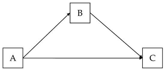 Simplified Partial Mediation Model. This figure depicts a partial mediation model where A and C are directly related, but the effect is also partially mediated by B.