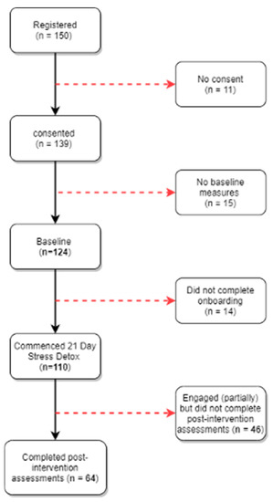 Potential participants were recruited from a non-clinical sample of University of Auckland students. The study was advertised directly to students using electronic announcements on a student portal, University research recruitment page, and brief (2 min) in-person (by RW) invitation to the study to a few undergraduate classes. The invitation to the study called for students who self-identified as “stressed” to try a “21-Day Stress Detox”.