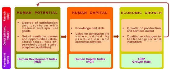 The relationship of physical (human) potential with human capital and economic growth under paradigm of United Nations Development Program (United Nations 2016; United Nations Development Programme 2019).