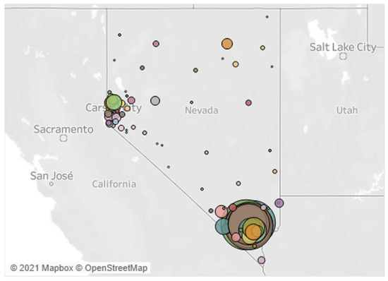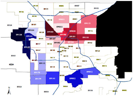 Figure 3 Key—Open Warrants by ZIP Codes in Clark County, Nevada (City of Las Vegas Median Household Income USD 56,354).