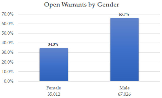 We used quantitative data on outstanding warrants that we extracted from the “City of Las Vegas Marshal—Warrant Search” website on 3 January 2021 (https://secure3.lasvegasnevada.gov/ewarrantlookup/, accessed on 3 January 2021). These warrants were issued by the Las Vegas Municipal Court between 2011 and 2021 to individuals who were ticketed or arrested within the city limits of Las Vegas, Nevada. These were the only warrant years that were publicly available. While there are other courts in Nevada, Las Vegas is the largest city in the state, and the Las Vegas Metropolitan area contains three-fourths of the state’s population. The Las Vegas Municipal court data was the only data publicly available in the Las Vegas area with the necessary information for our assessment, and we will discuss this below.