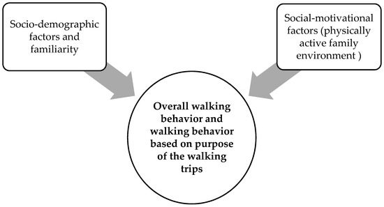 Furthermore, some of the previous studies on walking behavior have examined the relationship between walking behavior and its contributing factors based on specific goals of walking trips whether walking to/from work, walking to reach educational destinations, and other destinations as well (Craig et al. 2002; Plaut 2005; Sun et al. 2014, 2015). These studies suggest that the influence of different contributing factors to walking behavior may vary based on the purpose of the walking trips. Although these studies have shown the importance of the purpose of walking trips in regard to the contribution of different factors to walking behavior, this consideration has been done separately due to each type of destination. The current study also investigates the contribution of the selected factors to walking behavior based on different purposes of the walking trips simultaneously (Figure 1). This can be taken into account as one of the novelties of this study. The research questions of this study are as following: