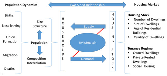 - Mulder, Clara H. 2006. Population and housing: A two-sided relationship. Demographic Research 15: 401–12. [Google Scholar] [CrossRef]