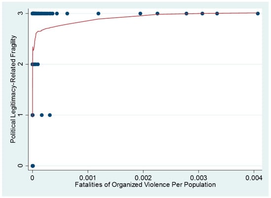 Political Legitimacy Problems and Fatalities of Organized Violence Per Population.