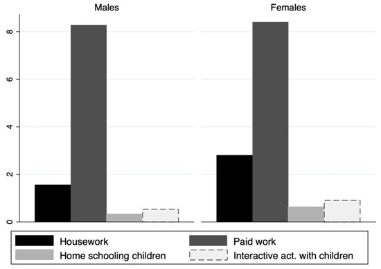 Previous studies have shown that men with higher education levels generally do more housework (Coltrane 2000). I used socioeconomic status as a proxy of education and occupation level, and men with higher socioeconomic status did report more involvement in housework. Furthermore, during the lockdown in the UK, many parents of school-age children reported that they were struggling with home schooling children (Sevilla et al. 2020). It seems like men in this sample might be considering the time spent with children as a part of housework or being involved in home schooling children leads to more involvement in housework. Given that the men in this sample reported spending the lowest time on home schooling among other activities such as paid work, housework, and interactive activities with children (Figure 1), it is interesting to find this relationship. Further research should consider asking fathers about their perception on whether home schooling children is part of routine housework, even under such structural conditions forced by the pandemic prevention measures.