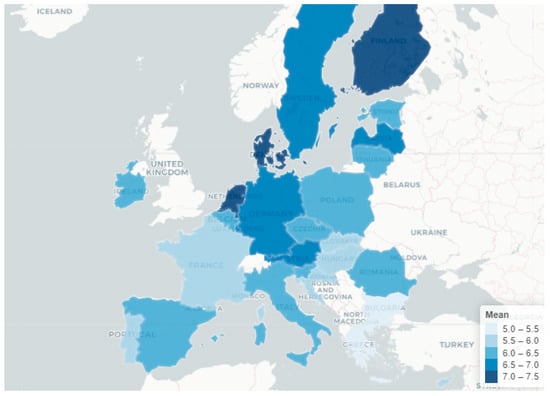 For several decades, important literature on life satisfaction and subjective wellbeing has been produced in order to evaluate the quality of life from a personal perspective (Blanchflower and Oswald 2000; Diener et al. 2018; Oishi et al. 2018). More recently, a growing number of studies have focused more specifically on worsening mental health status and wellbeing during the isolation period (Brodeur et al. 2020; Davillas and Jones 2020). During the period of April/May 2020, life satisfaction in Europe was at moderate levels (mean = 6.3 on a scale from 1 to 10) (Eurofound 2020) (Figure 1); young people and women were the demographic groups most impacted during the lockdown period. Having a paid job, living with a partner, and daily exercise contributing to maintaining good physical health were also considered to be major determinants of wellbeing, while restrictions on mobility, changes in workload, and decrease in income were associated with increased levels of anxiety and dissatisfaction (de Pedraza et al. 2020).