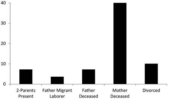 Interviewees representing the five family types were not always members of the original five random samples for several reasons. First, it was discovered only after interviews began that although the “divorce” sample was intended to capture children of divorced parents, it had been drawn such that many were actually intact two-parent or father migrant laborer families in which the mother had had an earlier, brief, childless marriage. Moreover, whereas mothers in intact families were almost always found at home, primary caregivers in the three non-intact family types were not. Thus, if the researcher travelled to a rural bari only to discover that the targeted interviewee was not at home, or had moved, another family in the same bari was substituted. This type of substitution is an accepted methodology (e.g., Fraser Schoen 2014) and is unlikely to have introduced bias, because families within baris are apt to share family and neighborhood attributes. Finally, the circumstances of some targeted interviewees had changed such that they belonged to a different family type than when the sample was drawn (e.g., if the husband in a “two-parent” family had recently departed to be a migrant laborer). Others met the criteria for two groups (e.g., a woman caring for a stepchild and her own child of the present union, or a grandmother caring for her deceased daughter’s infant and a dependent child of her own); when such women (n = 18) provided answers about both children (or sets of children) under their care, the relevant responses were then recorded separately under the two relevant family types. Whether any of these complications compromised the representativeness of the final five samples cannot be determined.
