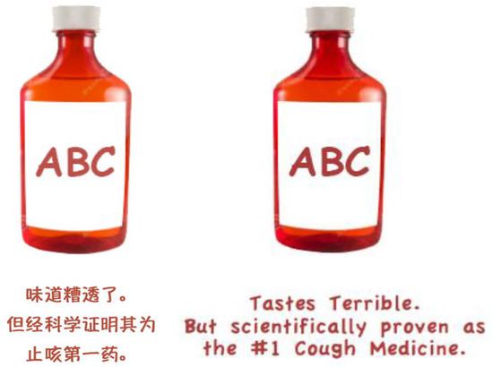 The study was conducted in China as an Eastern country and the US as a Western country. Several pretests for the questionnaire were implemented. Five bilingual assistants fluent in Chinese and English were hired to generate several advertisements suitable for both China and the US. Upon testing the advertising copies on 15 Chinese and US participants, respectively, one copy was identified as the most liked and suitable for both countries—“ABC Cough Medicine” with the following two-sided message: “Tastes terrible. But scientifically proven as No.1 cough medicine.” The advertising copies in both English and Chinese are provided in Figure 4. Both countries’ participants showed similar liking of the advertisement copy as there were no significant differences in their ratings on the seven-point scale liking measures. We pretested the questionnaire with 30 participants from China and 21 from the US using the selected copy.