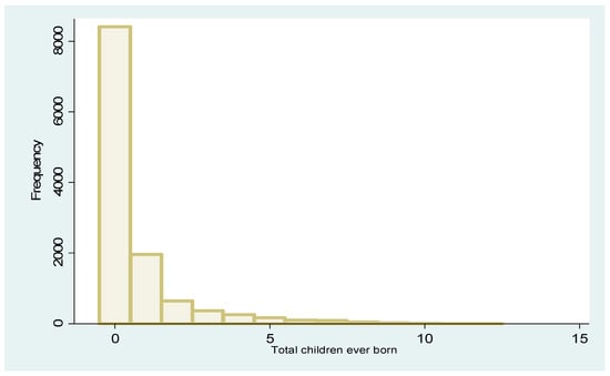 Histogram of the total count of children born.